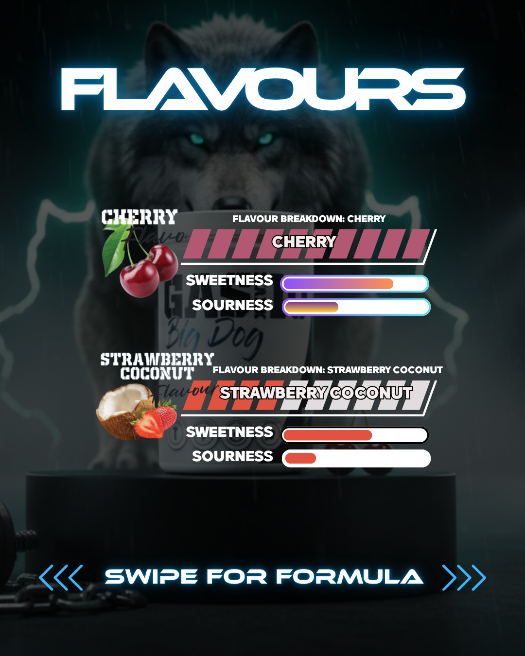 Big Dog combines Carb10® and Highly Branched Cyclic Dextrin – two low-glycemic, fast-absorbing carbohydrate sources that deliver steady, clean energy without the crash.