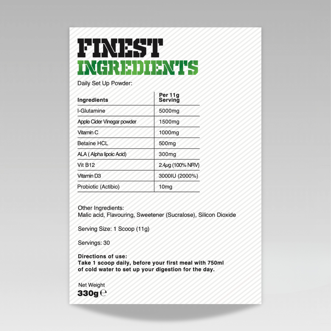 Take 1 scoop daily before your first meal with 750ml of cold water to set up your digestion and energy for the day.