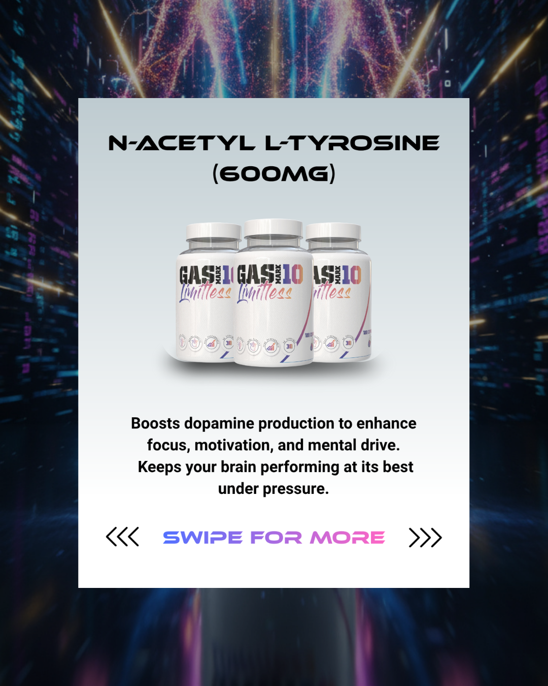 N-Acetyl L-Tyrosine (600mg): Supports focus and stress resilience.