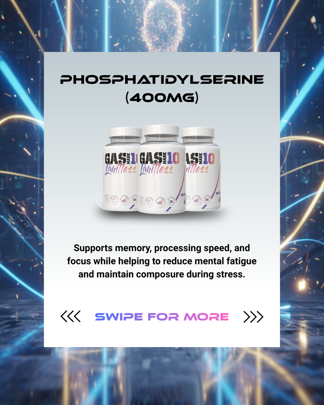 Phosphatidylserine (400mg): Improves attention and cognitive speed.