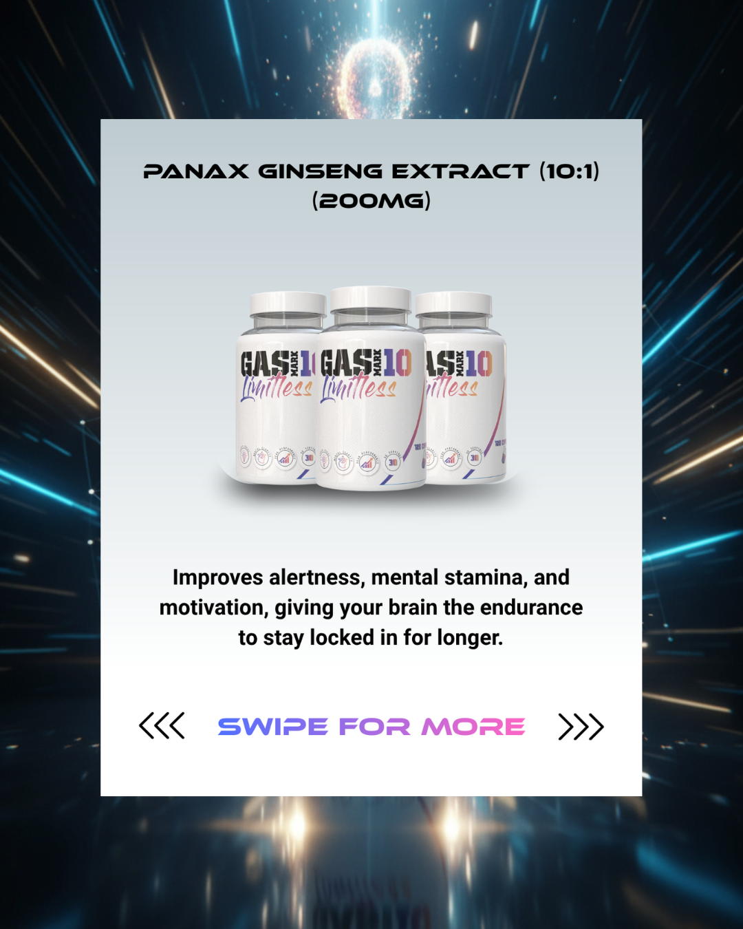 Panax Ginseng (200mg): Elevates mental performance and stamina.