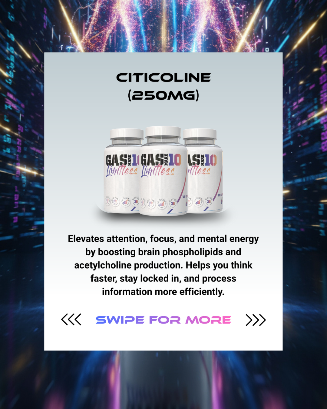 Citicoline (250mg): Boosts energy metabolism in the brain.